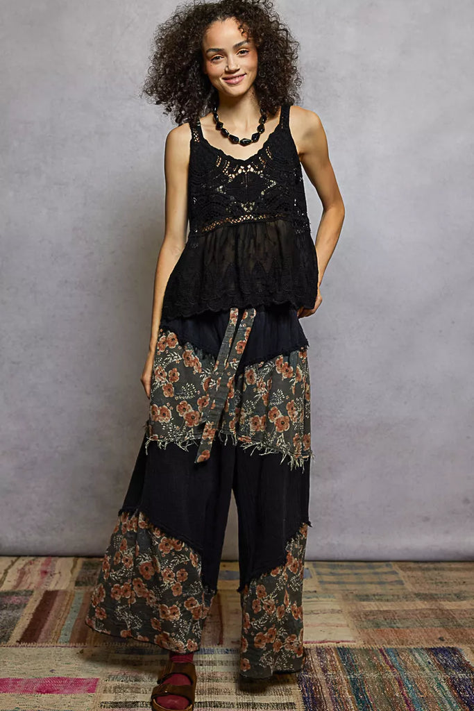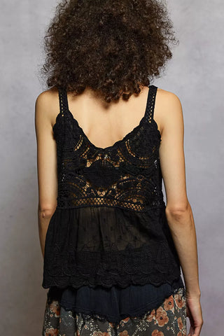 POL V-Neck Crochet Tank with Floral Embroidery Detail