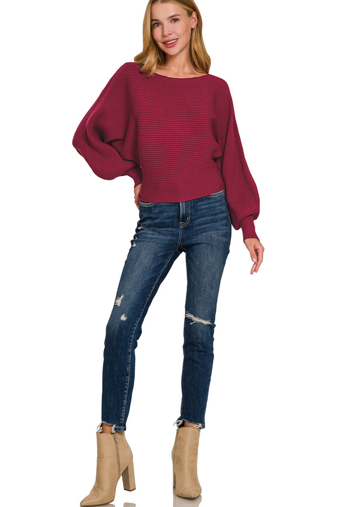Effortlessly chic and incredibly comfortable. This Cozy Chic Ribbed Boat Neck Sweater features a flattering boat neckline and relaxed dolman sleeves for an easy, laid-back fit. The lightweight, breathable fabric makes it perfect for layering, while the ribbed texture adds a polished touch that works for both casual days and dressier moments.