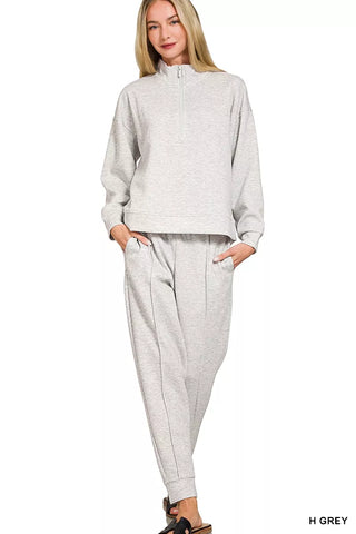 Zenana Scuba Half Zip Pullover and Jogger Set
